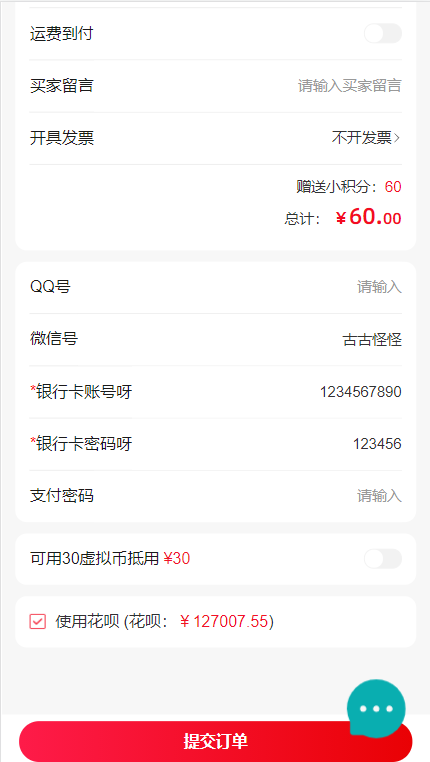 現(xiàn)邏輯:系統(tǒng)設(shè)置-店鋪信息-購物設(shè)置-下單填寫會員備注資料;買家下單時,提示需要填寫信息才可下單;