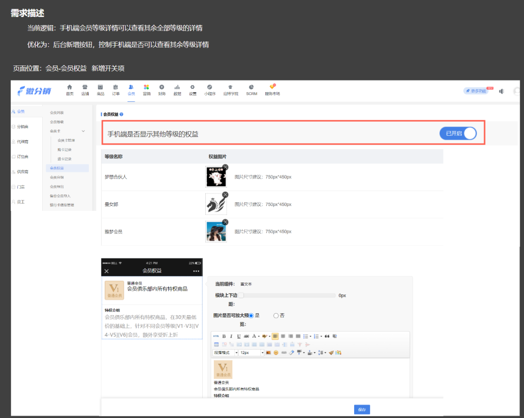 當前會員-會員權益(新增“手機端是否顯示其他等級的權益”開關項