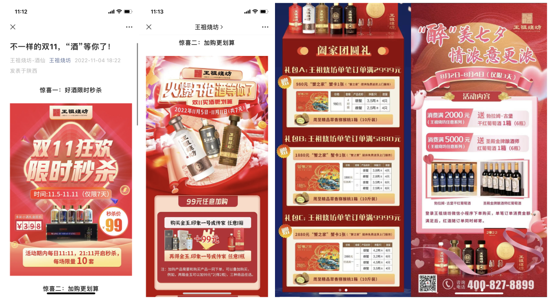 王祖燒坊適逢傳統(tǒng)節(jié)日、大促營銷節(jié),商城內(nèi)會上線特惠福利給到消費(fèi)者,如“滿贈”、“秒殺”等營銷活動。