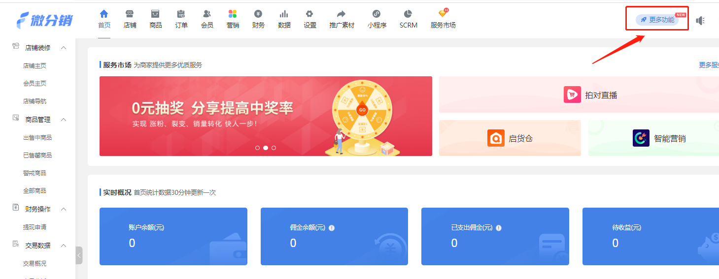 2.1進入系統后臺,點擊右上角【更多功能】-【小程序】-【視頻號小店】頁面填寫參數