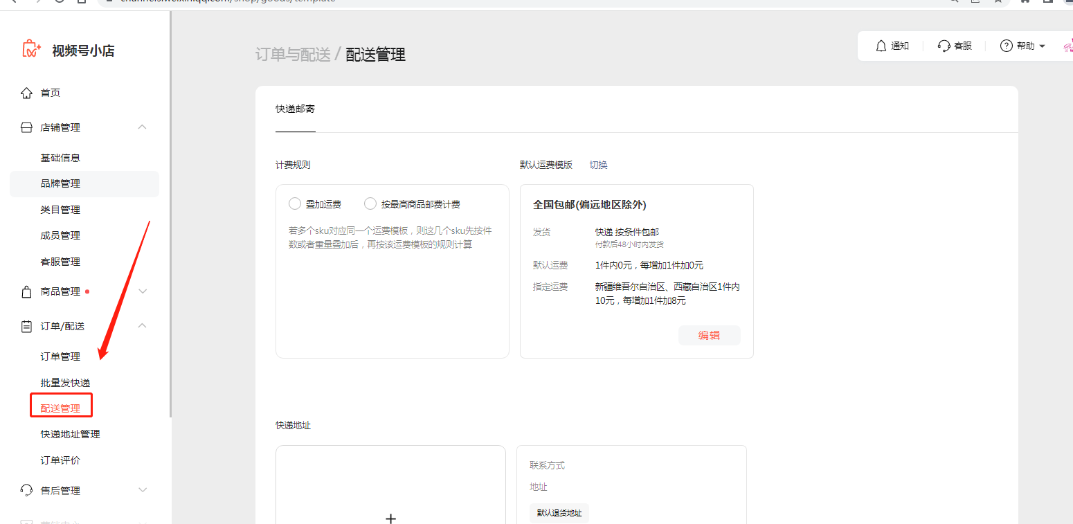 3.2添加視頻號商品的運費規則