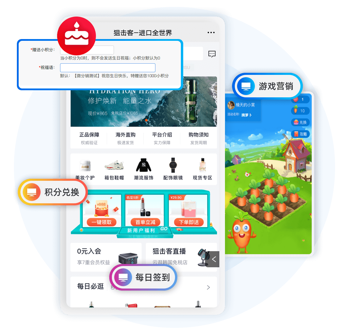 互動促活每日簽到、積分兌換、生日營銷、游戲營銷等,促進會員粘性,培養會