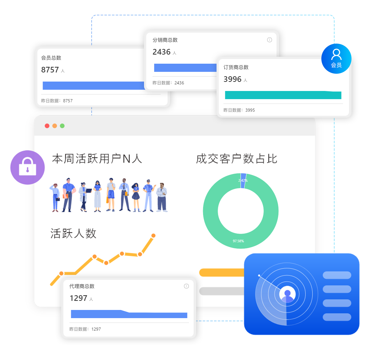 會員數據從累計粉絲、成交客戶數、粉絲活躍度、領券會員等深度洞察會員消費