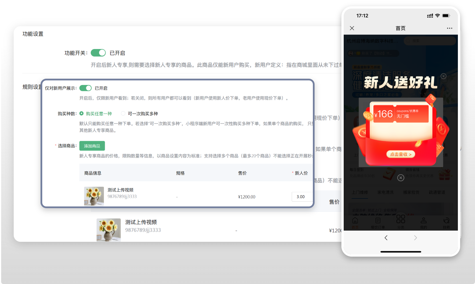 為商家提供主動觸達首次進店的新用戶,通過設定個性化的歡迎優惠券、引導用戶完成首單、建立完善的會員積分體系,同時促進會員的留存。