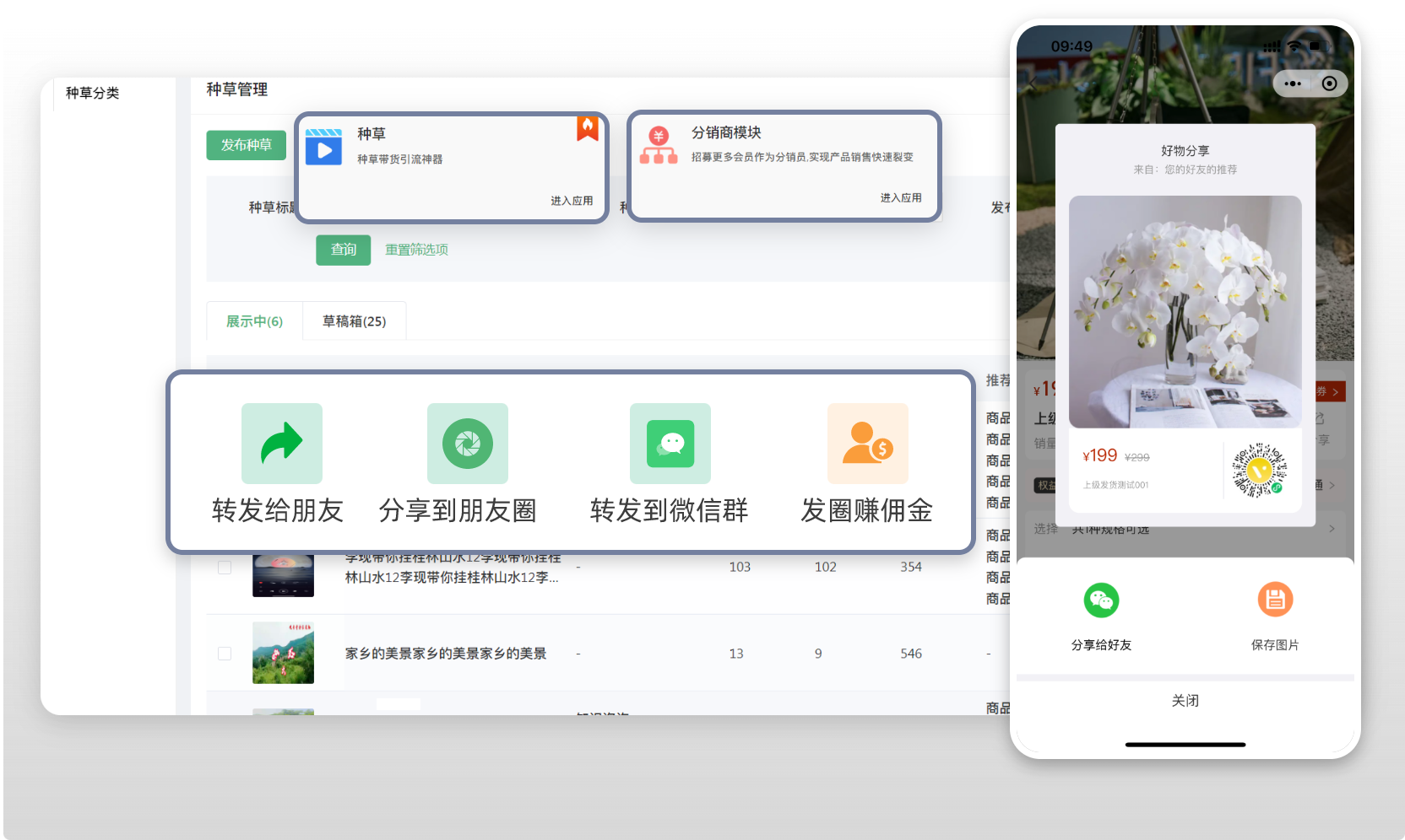 結合上門服務的情況,收集視頻素材,利用視頻種草功能,傳播服務品質;其次通過分銷商功能,讓你服務過的客戶利用社交口碑進行裂變分享,享受額外返現,返現可用于下次服務進行抵扣。