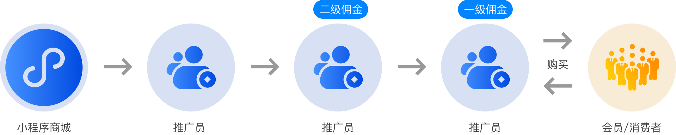 • 傭金比例配置靈活,會員角色自動升級
